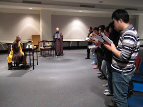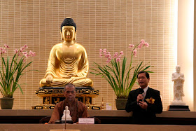 見燈和尚開示「追求真正的富貴」,現場英文同步翻譯。
