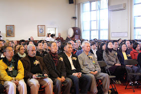 Master Jian Deng gave a Dharma talk to nearly one hundred people. The talk is simultaneously translated into English.