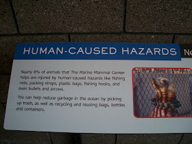 One place that leads world marine science in understanding the impact of human choices on the oceans is The Marine Mammal Center (TMMC), the largest marine mammal hospital, research and education center in the world. Tucked away in the Marin Headlands, near Sausalito, north of the Golden Gate bridge, TMMC runs a year-round operation rescuing, rehabilitating and releasing marine animals, such as California Sea Lions, Stellar Sea Lions, Elephant Seals, Harbor Seals, Northern Fur Seals, dolphins, migrating whales and sea otters. It rescues orphaned, injured, sick and stranded animals from 600 miles of California coastline by deploying a fleet of rescue trucks and volunteers out of several "stranding outposts," stretching from San Luis Obisbo to Mendocino County. The main hospital is in Sausalito, and last year, when the facility opened, it received much public acclaim and won a Bay Area Green Architecture Award for its green building/engineering design.